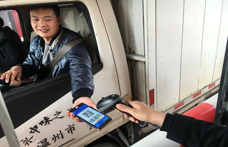 “嘀!”掃碼成功!臺(tái)州高速臺(tái)州收費(fèi)所出口車(chē)道,黃師傅掏出手機(jī)打開(kāi)支付寶APP,選擇首頁(yè)“付款”,手機(jī)對(duì)準(zhǔn)安裝在收費(fèi)窗口外側(cè)的掃碼設(shè)備,成功支付通行費(fèi),隨即拿到通行發(fā)票,車(chē)道欄桿自動(dòng)抬桿放行。掃碼繳費(fèi)出站僅用了幾秒種。這是臺(tái)州高速公路支付寶移動(dòng)支付通行費(fèi)第一輛車(chē)。“今天真是運(yùn)氣,正好沒(méi)帶現(xiàn)金,沒(méi)想到高速也可以支付寶支付通行費(fèi)了!”黃師傅贊嘆道,“現(xiàn)在出門(mén)就帶手機(jī),以前有次忘帶錢(qián)包,結(jié)果到了出口才想起來(lái),于是車(chē)子里到處找零錢(qián)。太尷尬了。”
