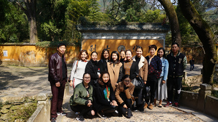 圖為第一批參加人員在瓊臺仙谷合影 上午9點30分,三個所共計40多位員工在集團公司下屬的旅行社導游小孫的帶領下,從臨海結集出發(fā),去往“人與自然和合、人與人和合、人與社會和合”的“和合圣地”——天臺,游覽國清寺和瓊臺仙谷。“和合文化”是天臺山文化的精華,也是中華傳統(tǒng)文化的核心與精髓。近年來,臺州市大力推進“和合文化”品牌建設,全力打造“和合圣地”,賦予“和合文化”新的生命力。大家深處由秀美的自然山水和內涵極豐富的佛道文化構成的天臺山美景中,享受著自在與輕松,整個活動過程更洋溢著“健康、和諧、友好、愉悅”的濃厚氛圍。 此次“一日游”活動,不僅激發(fā)了女員工們積極向上、自強不息的精神,也促進了同事之間的感情,增強了隊伍的凝聚力和戰(zhàn)斗力,從而營造和諧美好的氛圍。 鄭瑛芝