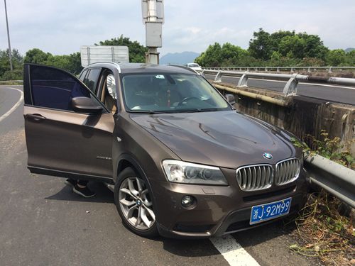 8月13日上午10:30分左右,臺州收費所出口寧向匝道口有一輛黑色寶馬X3斜靠在護(hù)欄旁,其車頭左側(cè)因碰撞護(hù)欄而嚴(yán)重凹陷,左前輪胎報廢。 當(dāng)時,該所出口五號車道的欄桿發(fā)生故障,需要暫時關(guān)閉進(jìn)行維修。班長張海勇在內(nèi)廣場引導(dǎo)車輛時發(fā)現(xiàn)此起事故,走近細(xì)看,由于碰撞激烈該車前檔玻璃破裂,前排安全氣囊彈出,而車旁的兩個人驚恐未定不知所措。此時匝道口車流不斷,因駕駛員遲遲找不到三角牌,為避免二次事故的發(fā)生,張海勇在車后方指揮交通,并提醒車旁人員站在護(hù)欄外安全位置,同時報告指揮中心事故車的位置和損傷情況。