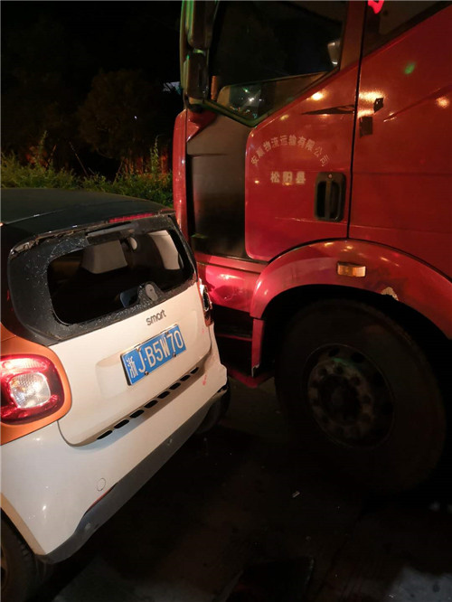 “碰”的一聲巨響。7月13日深夜11點30分左右,正好臨近交接班之際,一輛車牌為浙KJ2356的貨車與一輛車牌為浙JB5W70的小轎車在溫嶺西收費站一號超寬車道相撞,貨車把前面的小轎車后擋風玻璃整個撞碎,玻璃灑落一地。