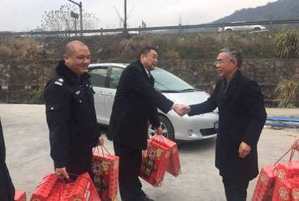 圖為公司董事長謝文君在一線慰問 每到一所,謝文君都向在崗亭內收費和監控室內的員工送上新春祝福,道聲:“辛苦了!”詢問值班安排,了解車流量情況。當得知當天車流量特別大時,謝文君要求各收費所即使是小型客車免費時間,也要合理安排上崗員工休息、吃飯時間,增強收費力量,加強各所間交流,及時掌握車流量變化,維護好通行秩序,確保安全暢通。要求各隧道所加強監控,時刻關注隧道內車流變化,及時提醒過往司機減速慢行通過隧道,確保過往司乘人員過個祥和平安的春節。 此外,謝文君還到食堂、宿舍查看員工在節日期間的飲食和住宿情況。了解在崗員工個個精神飽滿、熱情洋溢,謝文君感到欣慰,鼓勵大家繼續努力,提供優質的文明服務,樹好公司形象。