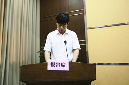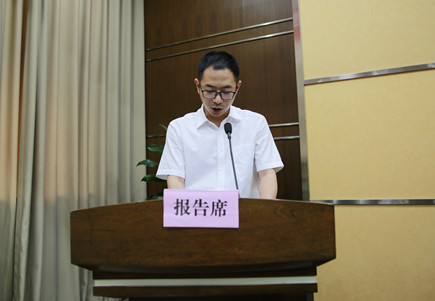 圖為公司工會主席項義超宣讀議案