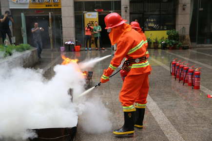 上圖為滅火模擬演練現(xiàn)場