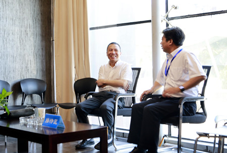 圖為集團副董事長、總經(jīng)理張建平向股權(quán)溫嶺收購點工作人員問候