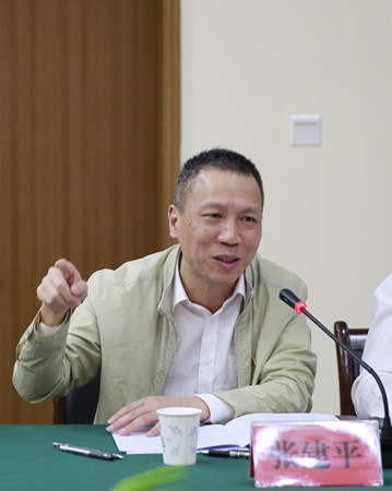 圖為集團(tuán)黨委副書(shū)記、副董事長(zhǎng)、總經(jīng)理張建平介紹集團(tuán)相關(guān)情況