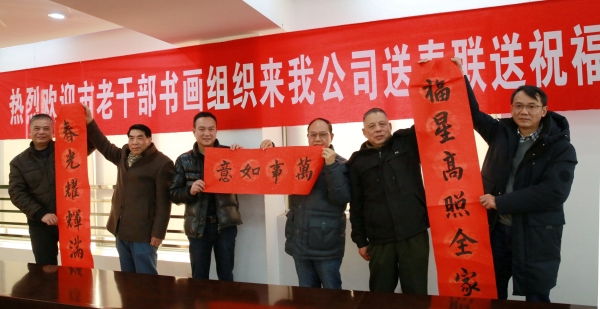 市老年書畫研究會會長楊通河一行來公司送春聯(lián)送祝福 1月17日下午,市老年書畫研究會會長楊通河,市直機關(guān)老干部書畫協(xié)會領(lǐng)導(dǎo)施巨日、陳孔梅一行來公司送春聯(lián)送祝福,感謝公司對研究會的支持和關(guān)愛,祝愿公司在新的一年里紅紅火火,萬事如意,經(jīng)營發(fā)展越來越好。