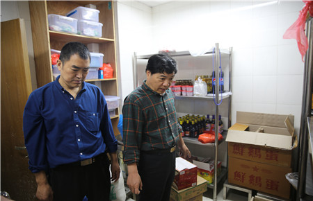 圖為集團安全總監項同富檢查食堂衛生