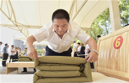 教官用手量量被子上下厚度,四周細(xì)細(xì)觀察,在兩床“豆腐塊”被子之間反復(fù)來回查看了幾遍,又與另一個(gè)教官指指點(diǎn)點(diǎn)商量了好久,不僅是參賽者,圍觀者都開始緊張了。確實(shí),按照內(nèi)務(wù)整理要求,這兩床已被疊成豆腐塊的被子折得有棱有角,被面光滑,上下勻稱,外行人看來就是一模一樣的完美,沒有任何區(qū)別了。“讓他們都晉級(jí)吧?!迸杂^者說。教官笑著搖搖頭,對(duì)大家解釋道:“3號(hào)床勝出,因?yàn)樗请p面折法,在規(guī)定時(shí)間內(nèi)兩面修整程度都一樣平整,這樣比起來,5號(hào)床稍遜一籌。”