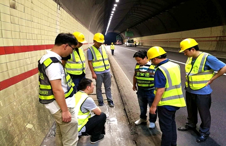 在施工現(xiàn)場,隨處可見工程部人員的身影,他們奔走于各個作業(yè)點(diǎn),緊跟施工進(jìn)度、緊盯施工質(zhì)量、協(xié)調(diào)施工相關(guān)問題。工程部管理人員嚴(yán)格注重隧道施工的質(zhì)量與安全管理,現(xiàn)場跟進(jìn)監(jiān)督并要求施工單位設(shè)立安全領(lǐng)導(dǎo)小組,嚴(yán)格對現(xiàn)場安全、質(zhì)量進(jìn)行把控,確保安全質(zhì)量零漏洞。當(dāng)施工人員提出在活動腳手架上不方便安裝監(jiān)控?cái)z像機(jī)時,維養(yǎng)中心負(fù)責(zé)人葉俊及時為他們聯(lián)系了登高車,大大節(jié)省了安裝時間。另外,趁塘嶺隧道施工之際,工程部積極響應(yīng)部里隧道安全風(fēng)險(xiǎn)防控文件及新規(guī)范要求,完成了隧道口混凝土翼墻增設(shè)、三波護(hù)欄過渡段設(shè)置、洞口導(dǎo)流標(biāo)線漆畫等系列工作。
