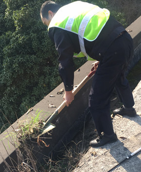圖為清理后的屋頂排水溝 大溪嶺隧道管理所依山而建,落葉、塵土、沙石堆積極容易造成排水溝的堵塞,如汛期來臨,排水溝堵塞造成的隱患無窮。 所執(zhí)勤隊(duì)根據(jù)安排,排查配電房、管理房等汛期容易受災(zāi)害影響的隱患,遵循“發(fā)現(xiàn)一處整治一處,整治一處銷號(hào)一處”的原則,對(duì)配電房、管理房的屋頂排水這一安全隱患和薄弱環(huán)節(jié)進(jìn)行清理,以實(shí)際行動(dòng)落實(shí)整改和消除隱患,確保2018年安全度汛。 陳智慧