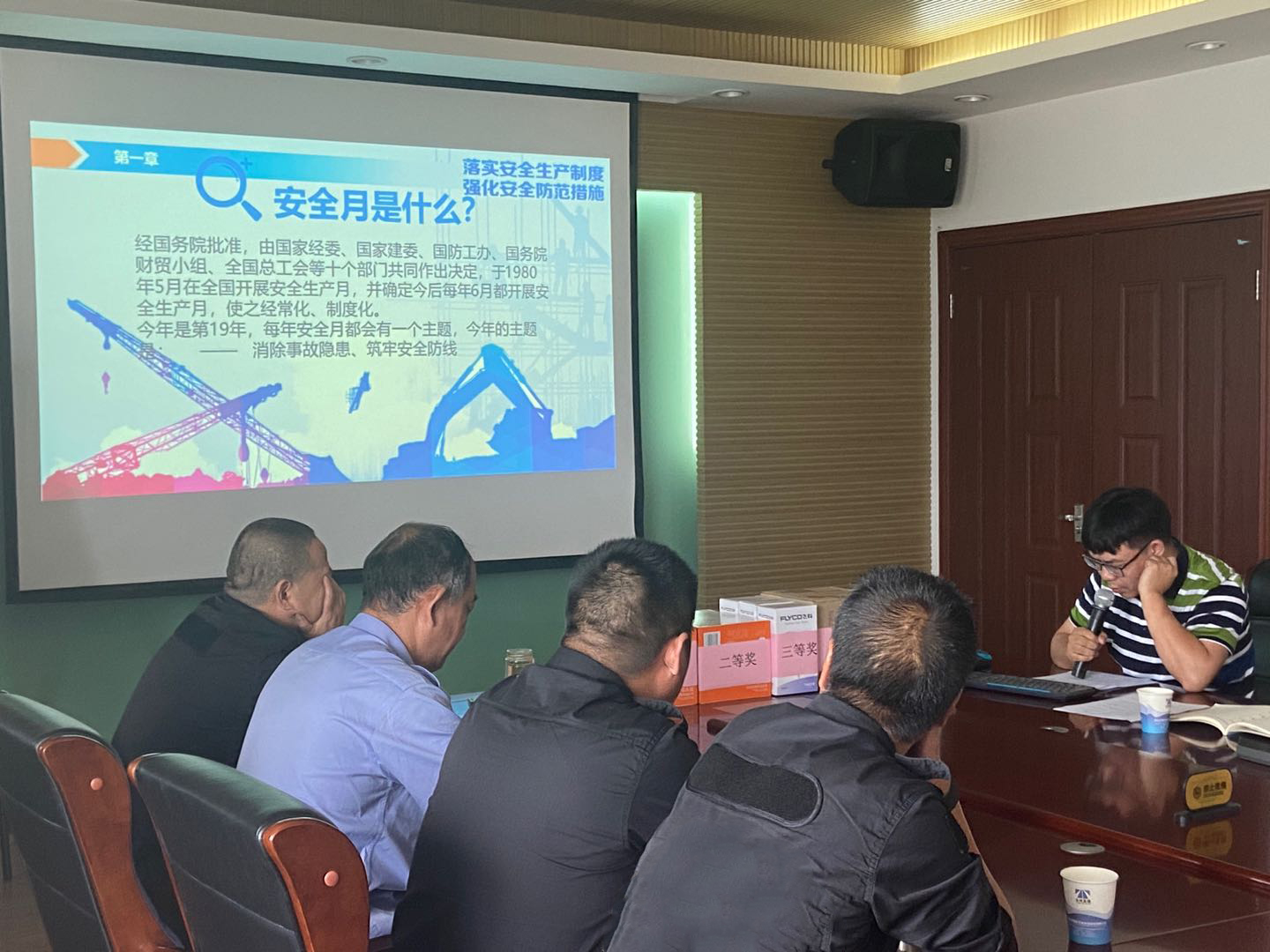 圖為中心員工宣講有關安全知識 安全知識講座由中心自行發動員工進行宣講,內容涵蓋日常安全和工作安全,其中主要講了野外安全、火災逃生、交通安全、急救知識和施救安全等,講座通過PPT的形式展開,圖文并茂,生動豐富,并具有大量與員工進行互動的內容。互動提高了員工的積極性,營造了良好的安全氛圍。 在安全知識講座后,中心在會議現場舉行了一場安全知識競賽。競賽以個人名義參賽,采取搶答形式,內容涉及日常安全道路救援、安全制度等。競賽中大家積極參與,踴躍搶答。經過激烈的角逐,最后陶淘等六人分獲一二三等獎。 項同富對此次競賽給予高度肯定,為中心獲獎員工頒獎,并對中心的安全工作和其他一些工作提出了建議和要求。他指出,安全只有0分和100分,并要求大家把安全工作做細做到位,切實做到消除事故隱患,筑牢安全防線。 王凱