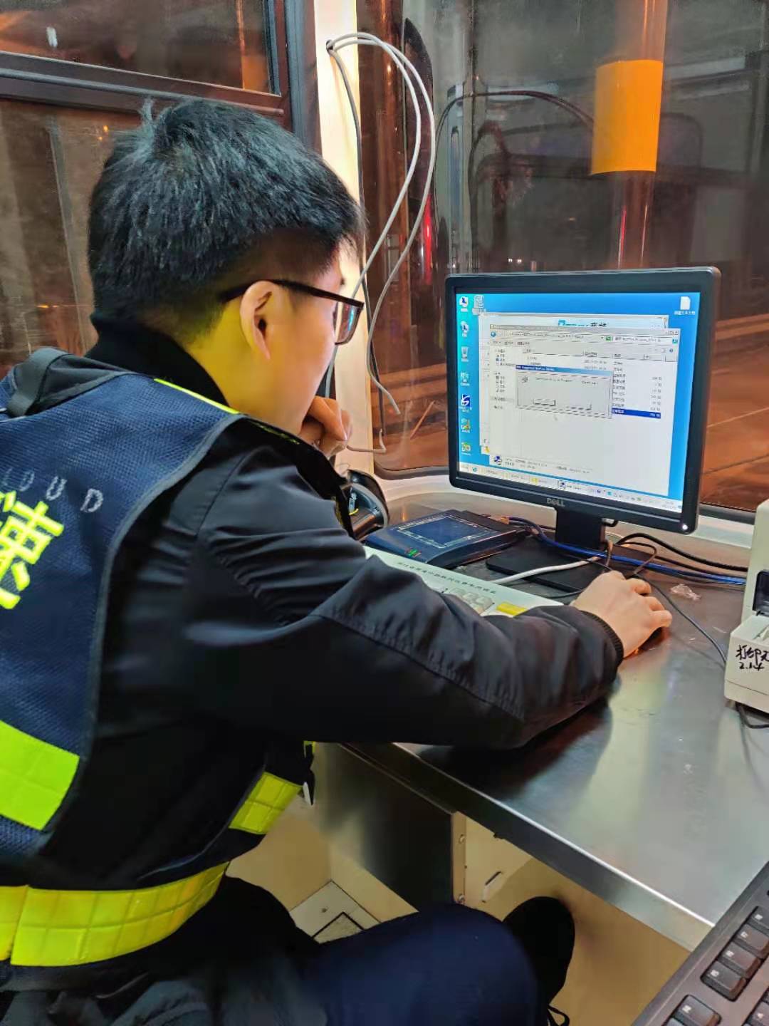 22日一早,中心電工配合廠家人員在車道繼續(xù)查線、接線,安裝崗?fù)さ幕A(chǔ)設(shè)備,系統(tǒng)員則在機(jī)房負(fù)責(zé)安裝新電腦的收費(fèi)系統(tǒng)及相關(guān)設(shè)備驅(qū)動(dòng)。大家各司其職、各盡其責(zé),僅一天時(shí)間就將近百線纜一一對應(yīng)并成功與外圍設(shè)備對接,與此同時(shí),系統(tǒng)員也恢復(fù)了原電腦中的數(shù)據(jù)并成功導(dǎo)入到新電腦中,避免了數(shù)據(jù)中斷。在修復(fù)過程中,搶修人員也曾遭遇各種困難,有些設(shè)備安裝需要專用工具,部分零散配件、電源等一般商鋪都沒有供應(yīng),但這些并沒有難倒他們,而是利用各自資源,跑遍了市區(qū)的大街小巷,或借或買,最后都被一一解決。