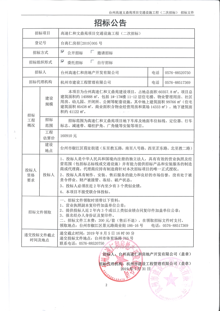 高速仁和文鼎苑項目交通設(shè)施工程招標(biāo)公告