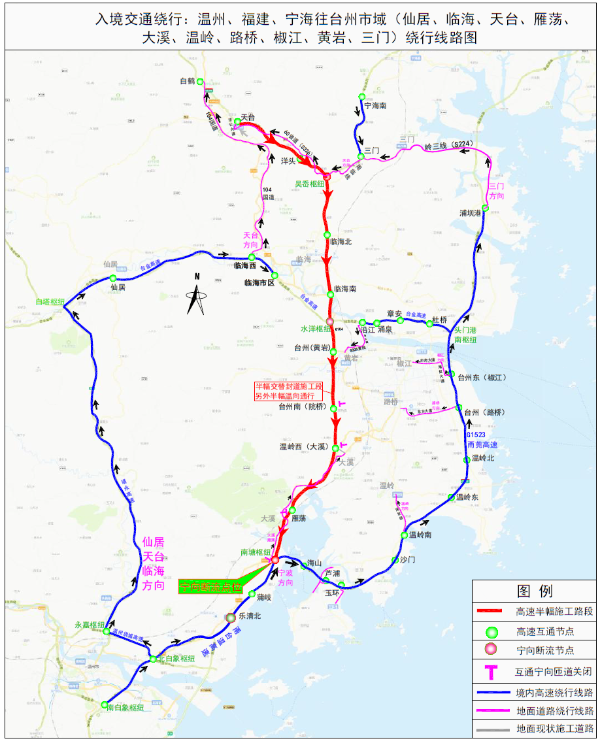 屆時雁蕩、溫嶺西(大溪)、臺州南(院橋)、臺州(黃巖)寧波方向關閉14天,臨海南、臨海北互通寧波方向進口關閉7天,洋頭互通上虞方向進口關閉7天,所有車輛禁止上高速;溫州方向進出口將根據改道需要臨時關閉。