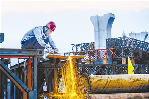 11月18日,內(nèi)環(huán)線8號立交橋上,電工楊斌正在檢修新安裝的路燈。寒風(fēng)凜冽中,來自安徽的小楊緊了緊衣領(lǐng),又嫻熟地接拉起電線來。這幾天冷空氣來勢兇猛,但為了內(nèi)環(huán)線早日通車,楊斌和他的伙計們,頂風(fēng)冒雨,只爭朝夕。